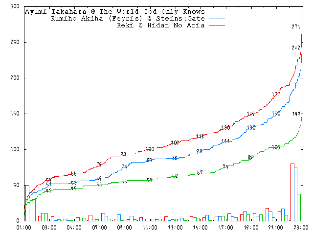 2nd 242 (36.56%) Rumiho Akiha (Feyris) @ Steins;Gate 3rd 149 (22.51%) Reki @ Hidan No Aria ![]() 1st 407 (60.75%) Ohana Matsumae @ Hanasaku Iroha